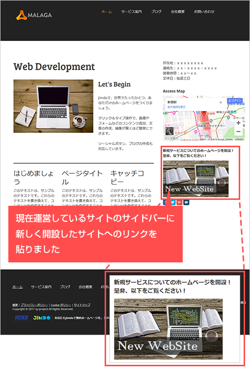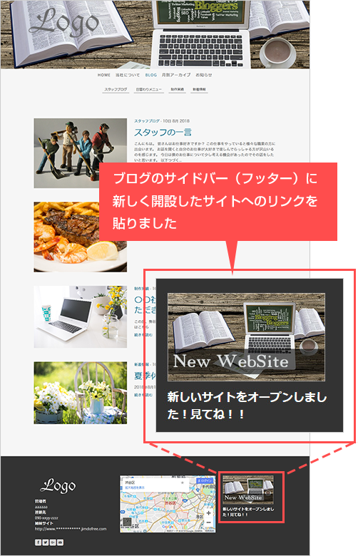 ブログや他のホームページを運営している場合は、つねに見えるところから開設したホームページへリンクを貼っておくようにしましょう。バナー形式でリンクを貼るのも効果的です。