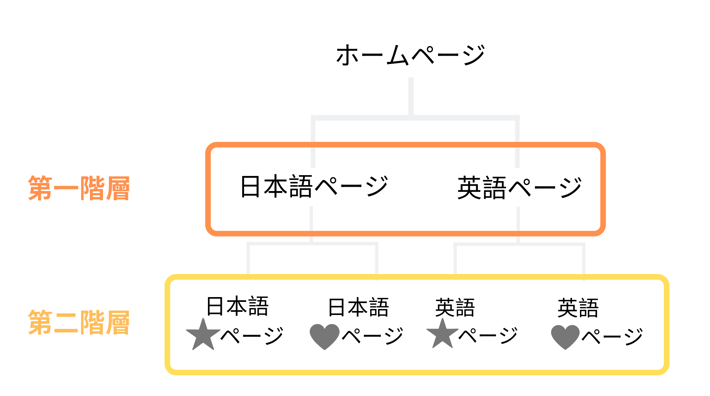 - 第二階層のページを作成していきます(各言語でそれぞれ同じ内容のページが存在します)。
