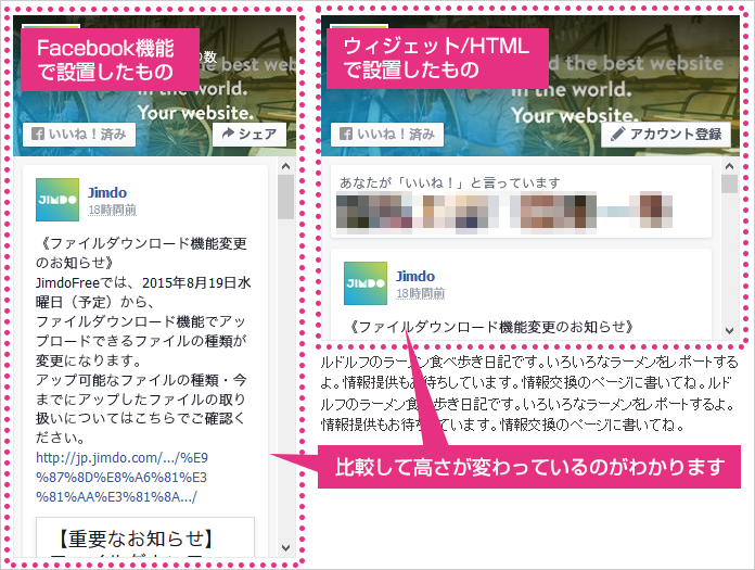 5. Facebook ページの高さを変更したい場合