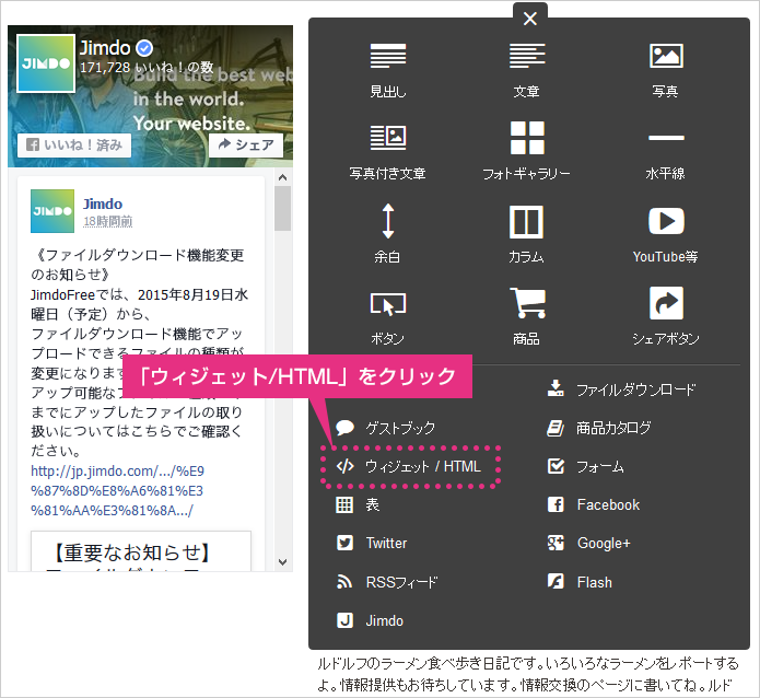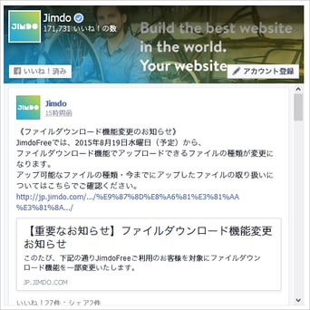 2. Jimdo の Facebook 機能を使ってみよう