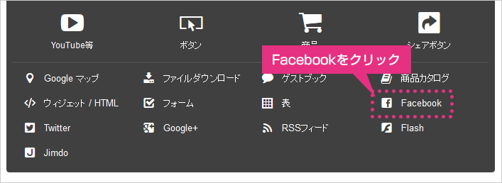 「Facebook」をクリックします。
