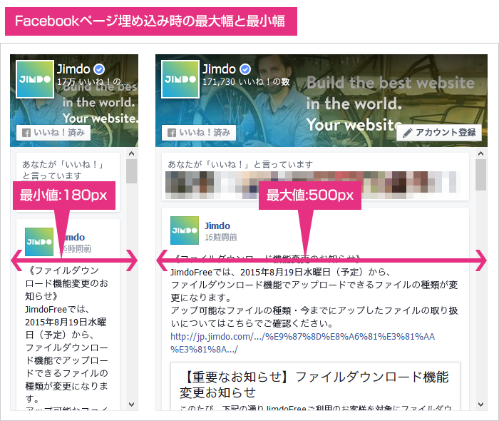 Facebook ページを埋め込んだときの幅を設定します。 |