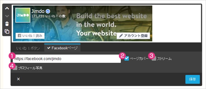 | ②ページカバー | チェックをつけると、Facebook ページのカバー写真が表示されます。 |