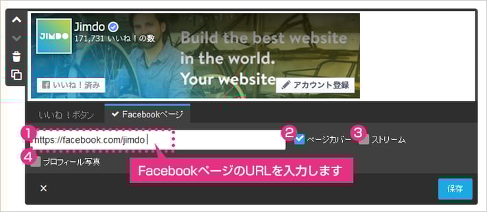 Jimdoへの埋め込みには、後者の「Facebookページ」が必要ですので、準備しておきましょう。 詳しくは、Facebook公式にガイドがありますので、参考にしてください。