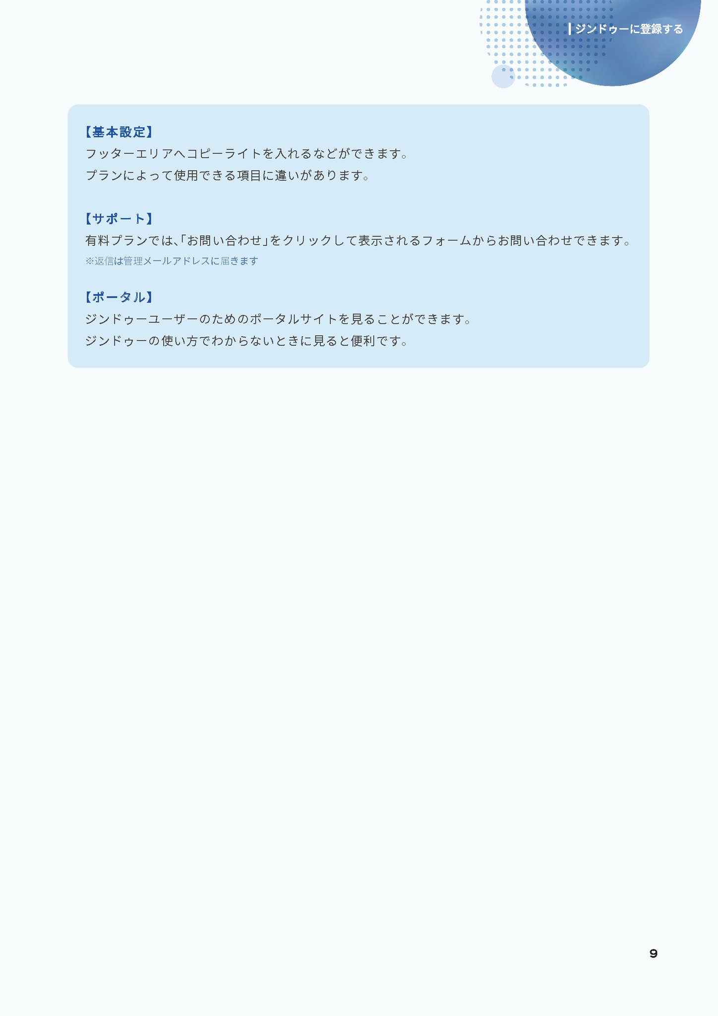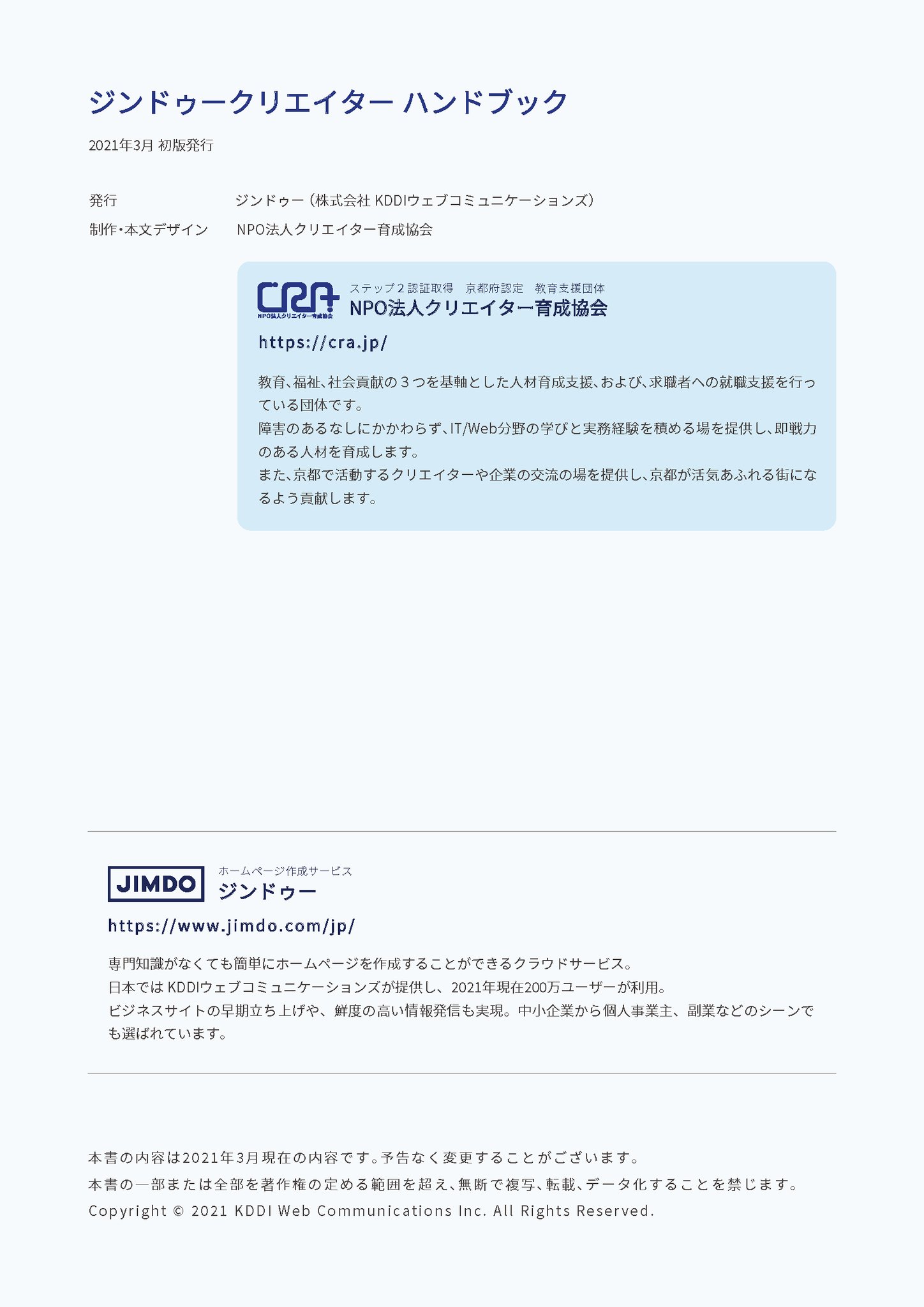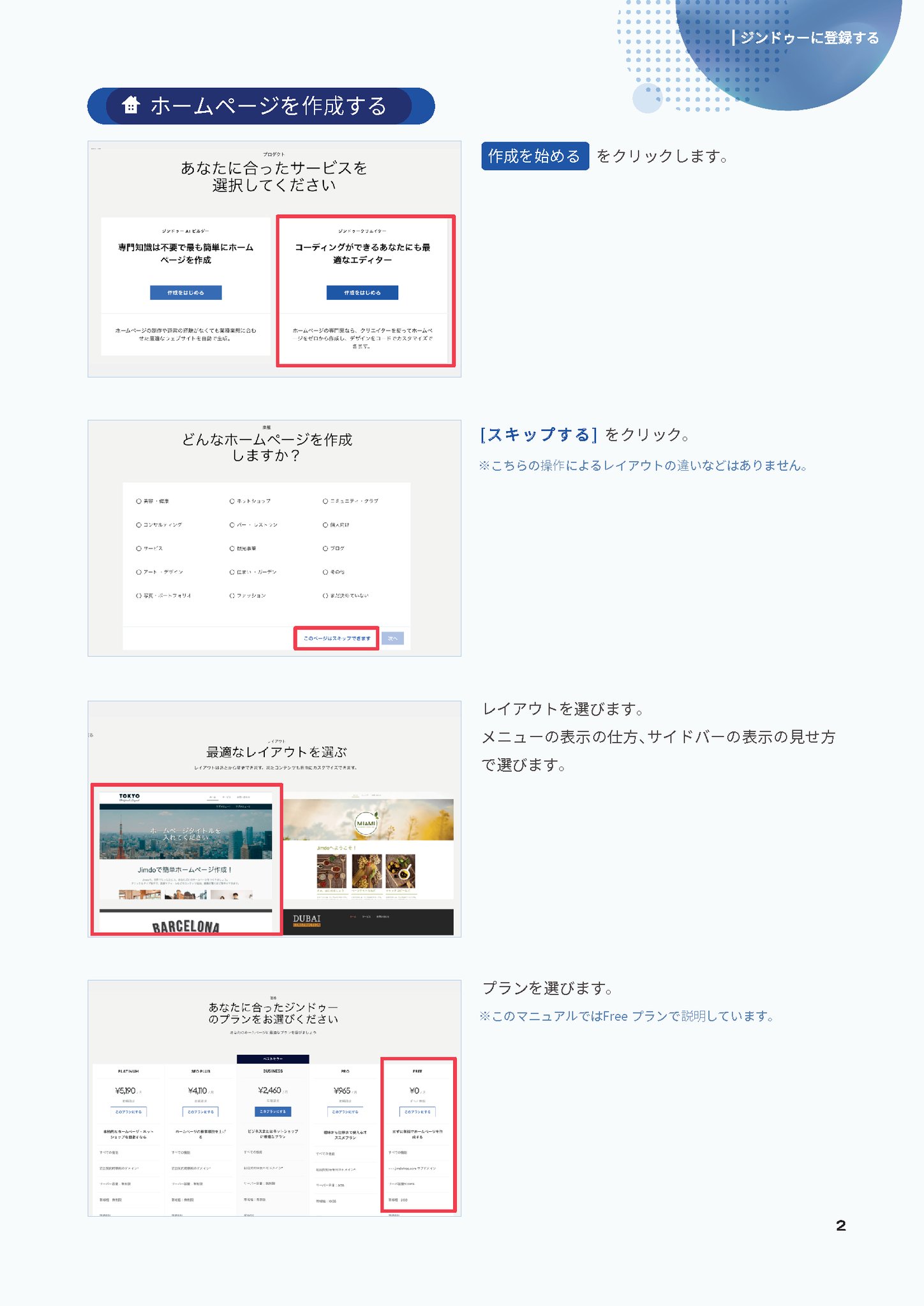 ンドゥークリエイターを使い始めたみなさまむけのハンドブックを作成しました。ジンドゥーへの登録手順から、ブログ・ショップの基本機能までを図解入りでまとめたマニュアルです。皆様のホームページ制作にぜひお役立てください。