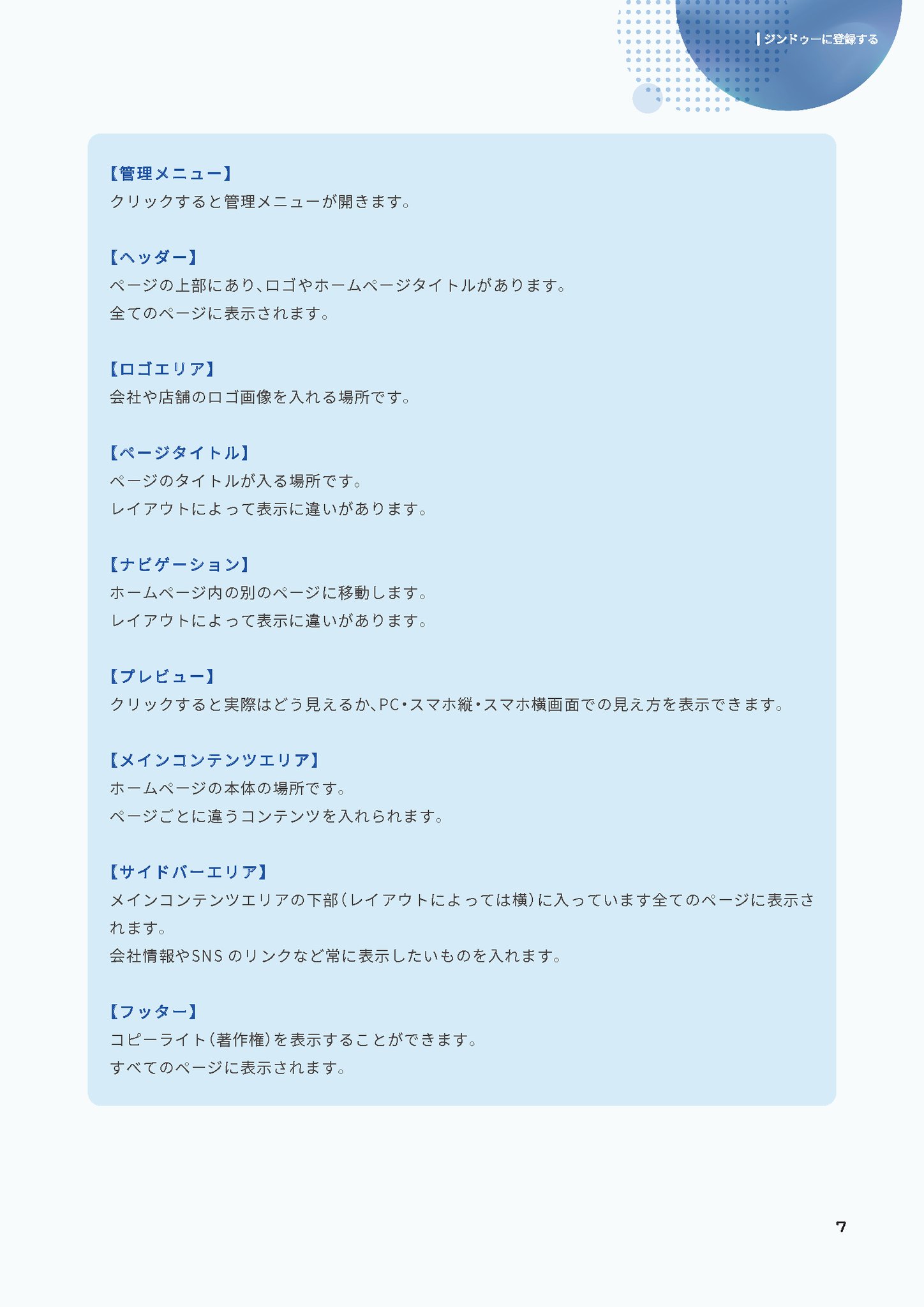 ジンドゥークリエイター(レイアウトから選んで作成。ブログやショップ機能のあるプロダクト)の基本的な使い方などを掲載。初めてジンドゥークリエイターでホームページを作成する方に向けたハンドブックです。